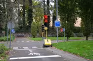 Cette réplique de la voie publique à l’échelle des enfants dans le domaine du Poelbosch permet d’enseigner les règles de sécurité routière aux jeunes usagers des écoles et asbl jettoises.